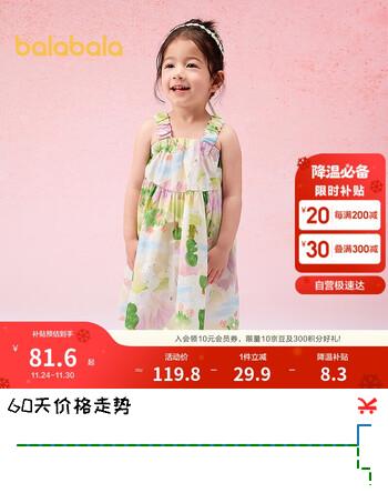【7折】巴拉巴拉童装儿童连衣裙女童宝宝裙子夏装2025度假吊带裙208225111021