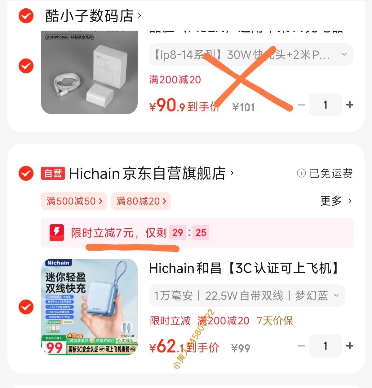 自营Hichain 自带双线1万毫安22.5W,弹限时折扣晒返10到手52.1
