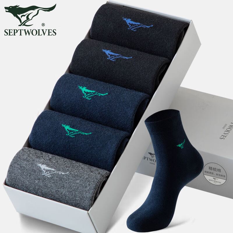 七匹狼 精梳棉偏厚款中筒袜 5双