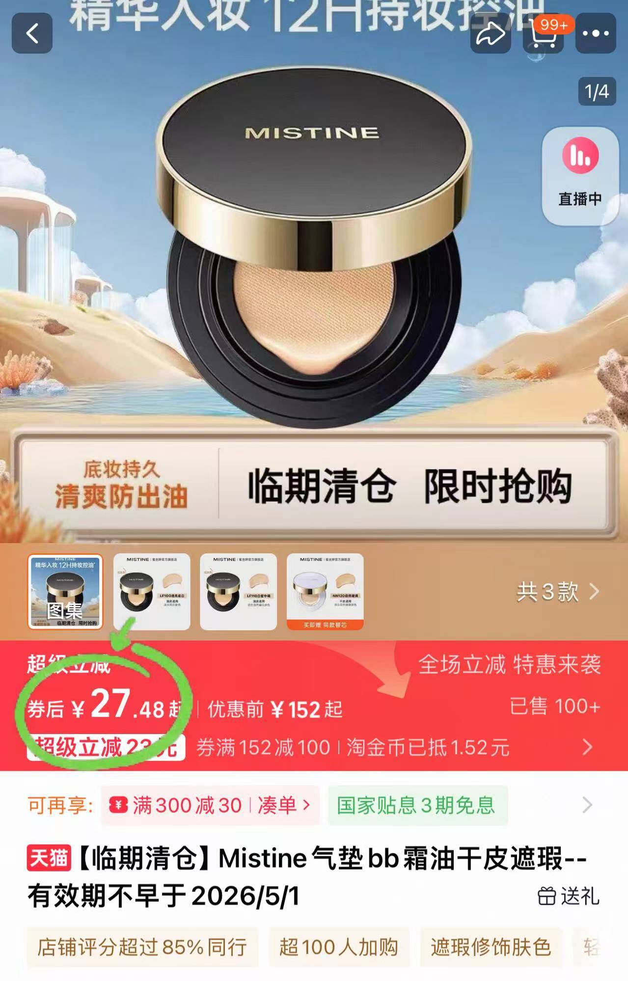29.9元临期清仓价 Mistine气垫bb霜 好忦 油皮/干皮可选 上妆苣扒脸 好单发报员 2025年11月25日 14:29 0 举报 29.9元临期清仓价Mistine气垫bb霜 好忦油皮/干皮可选 上妆苣扒脸好像天生好皮自带磨皮滤镜-https://m.tb.cn/h.SDvxMHL 复制文案
