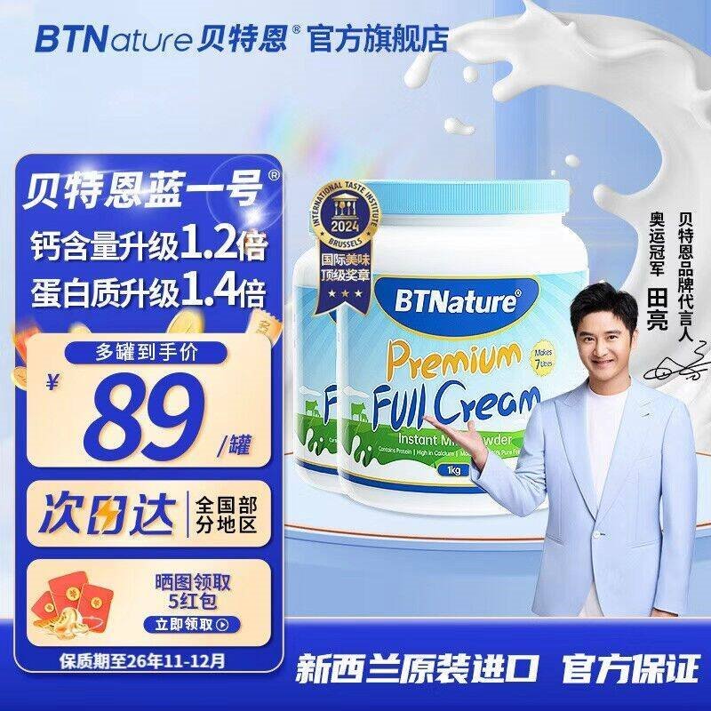 BTNature 全脂奶粉1000g*2罐
