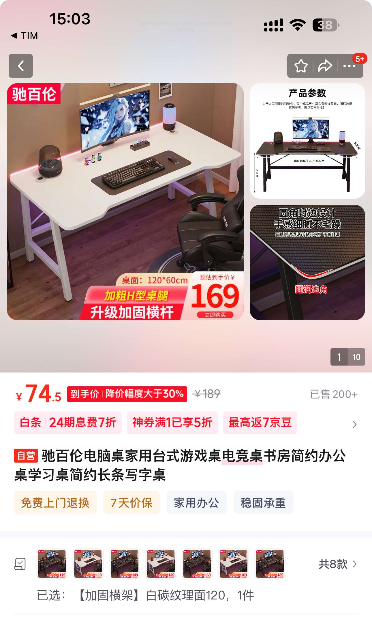【154.5】驰百伦实木升级版140*60加厚17mm电竞桌