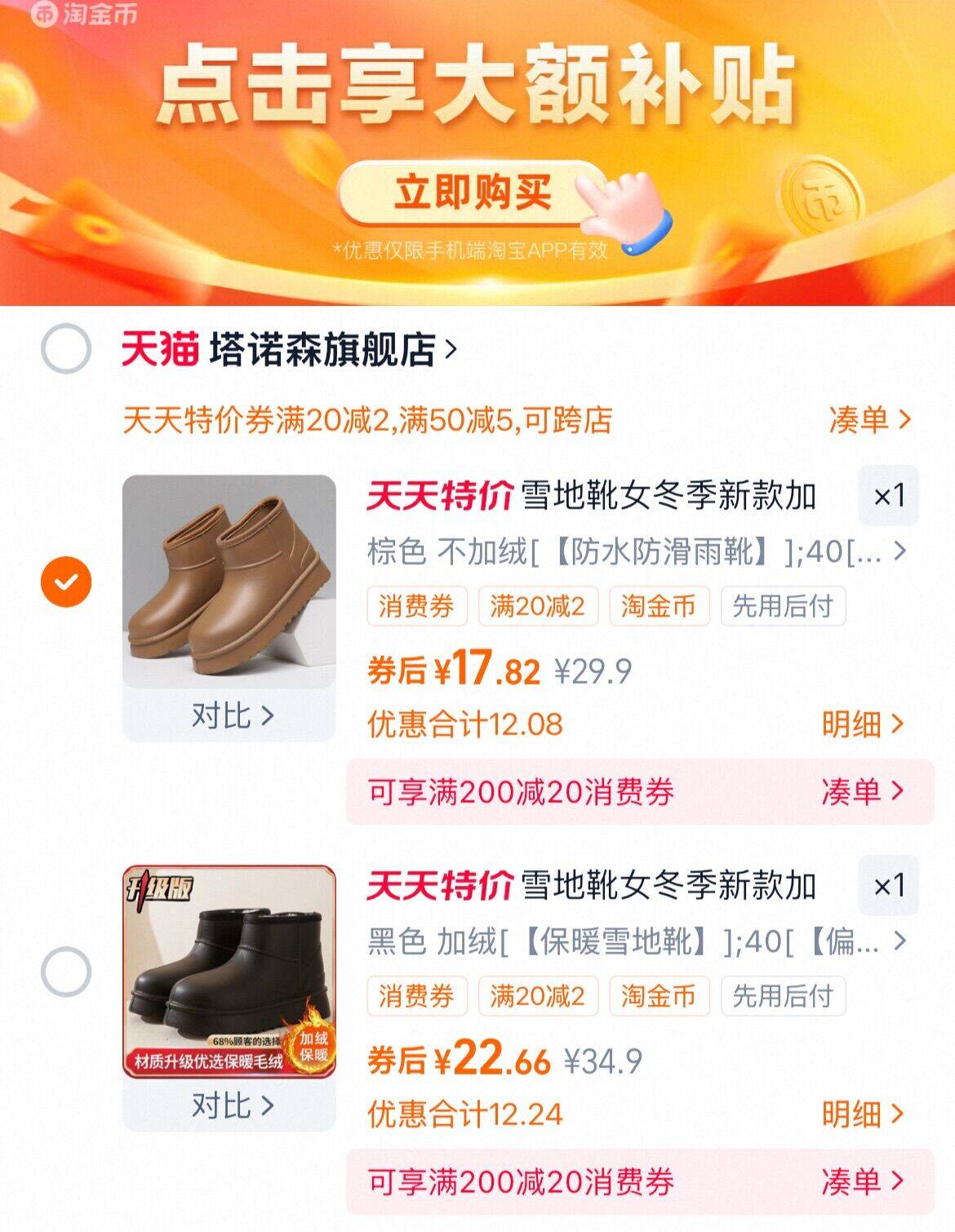 下拉拍,17.8亓起 防水防滑加绒加厚雪地靴 - 线报酷