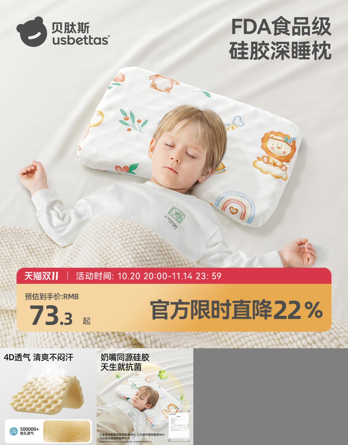78元 贝肽斯官方旗舰店 贝肽斯儿童硅胶枕婴儿枕头6个月