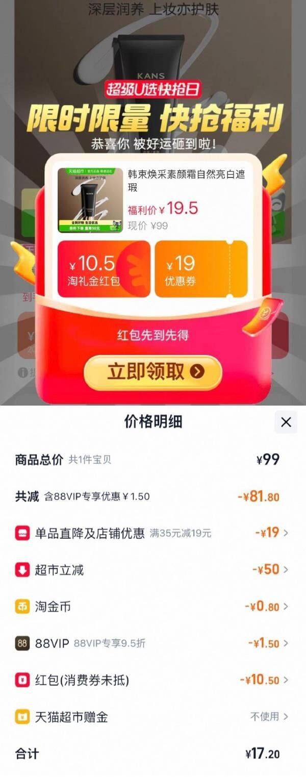 韩束焕采素颜霜50g,领礼金 淘金币页面我的足迹加购 拍1件vip 金币【17.2】 好单发报员 2025年11月25日 17:43 0 举报 韩束焕采素颜霜50g,领礼金淘金币页面我的足迹加购拍1件vip 金币【17.2】 https://m.tb.cn/h.SDTVP8z 复制文案