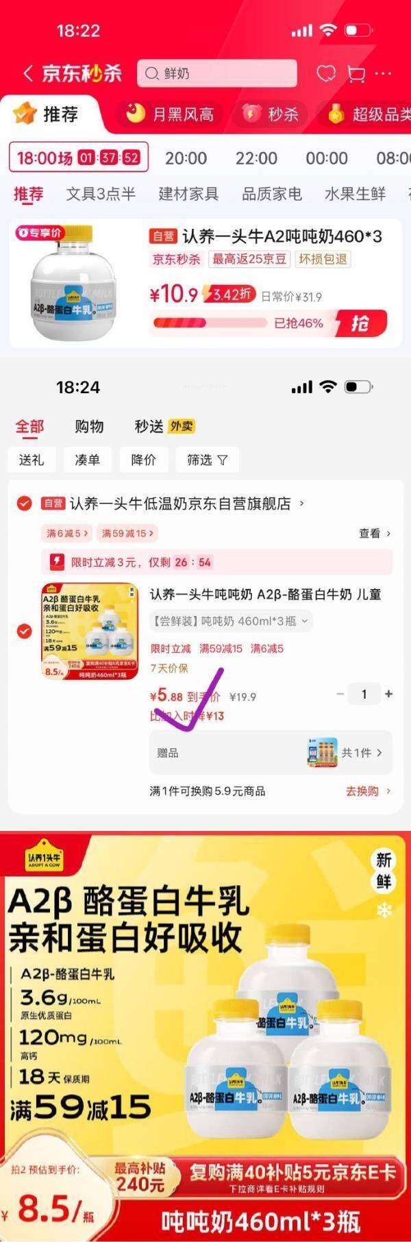 认养一头牛吨吨奶 A2β-酪蛋白牛奶 460ml*3瓶