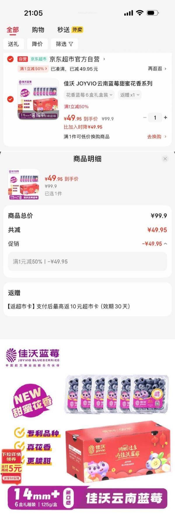 地区价 佳沃 JOYVIO云南蓝莓甜蜜花香系列 14mm 6盒 约125g/盒,山东【49.95】返10卡 好单发报员 2025年11月25日 21:06 0 举报 地区价佳沃 JOYVIO云南蓝莓甜蜜花香系列 14mm 6盒 约125g/盒,山东【49.95】返10卡 https://u.jd.com/WrTukMR 复制文案