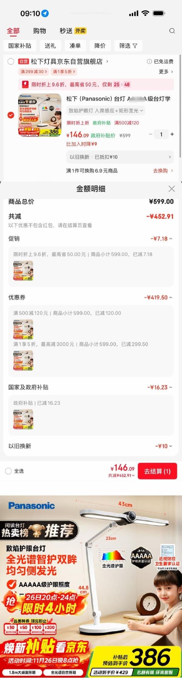 松下(Panasonic)台灯 5A级全光谱护眼台灯 致焰