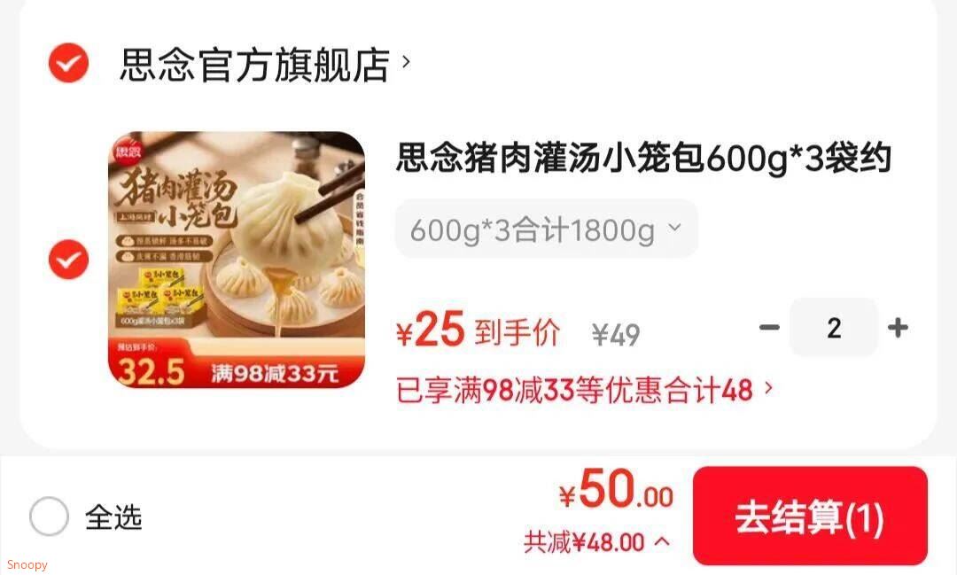 拍2件到手6袋共50元 加热即食!