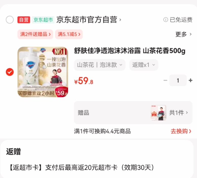 舒肤佳净透泡沫沐浴露 山茶花香500g