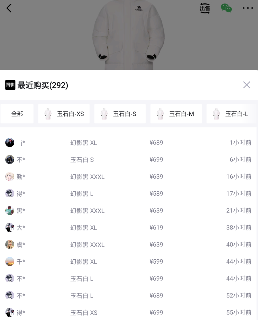 骆驼羽阵拒水羽绒服