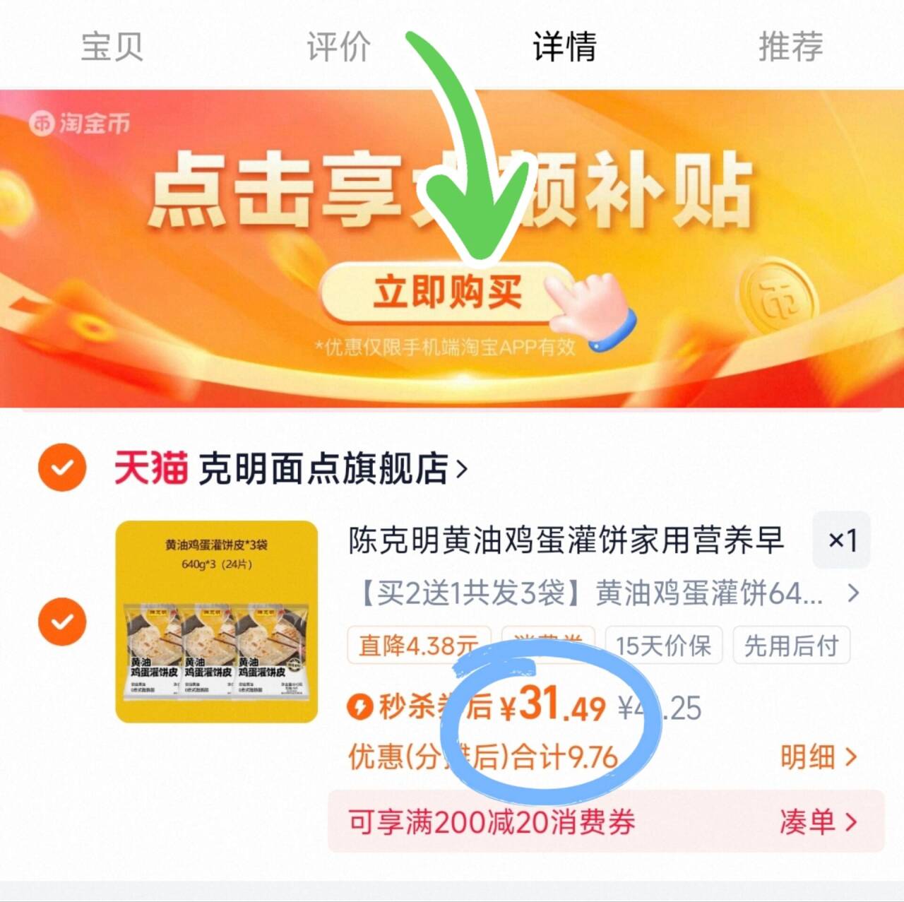 下拉抵琻币 拍第一项 - 陈克明安佳黄油鸡蛋灌饼 好单发报员 2025年11月26日 16:57 0 举报 下拉抵琻币 拍第一项-陈克明安佳黄油鸡蛋灌饼3袋共24片31元,折1.2片https://m.tb.cn/h.SCmLdAx 复制文案