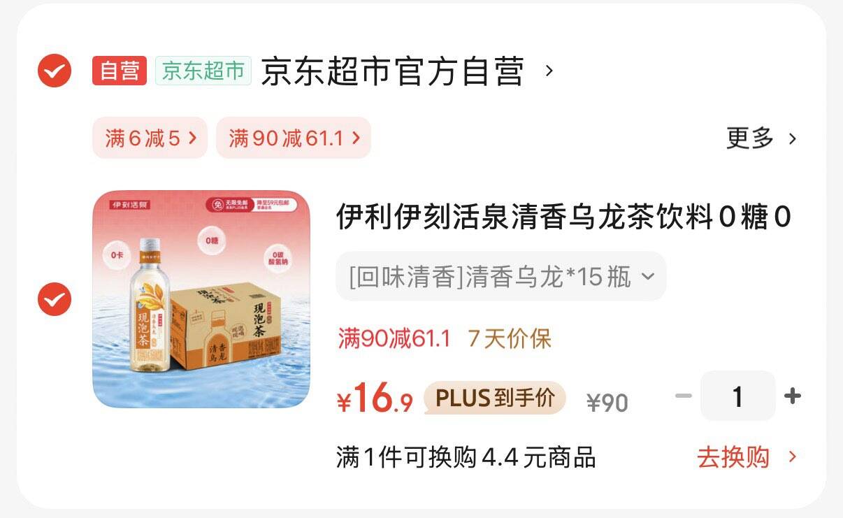 伊利伊刻活泉乌龙茶455ml*15瓶