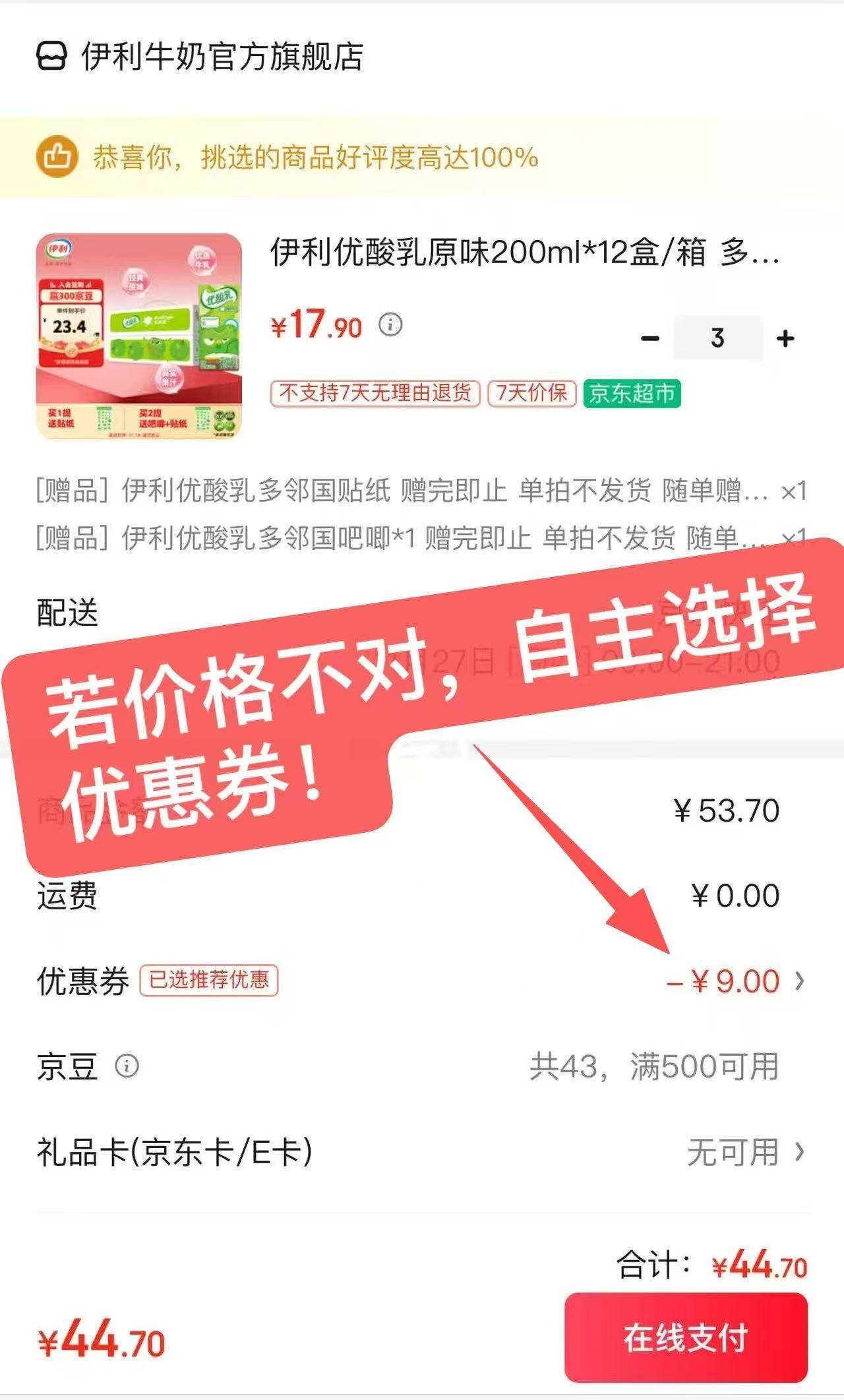 伊利优酸乳发車 伊利 原味优酸乳200ml*12盒 买3件44.7亓,才折14.9亓/箱 好单发报员 2025年11月26日 19:34 0 举报 ——伊利优酸乳发車——伊利 原味优酸乳200ml*12盒https://u.jd.com/W1ADVri买3件44.7亓,才折14.9亓/箱*赠多邻国吧唧 贴纸 酸酸甜甜 复制文案