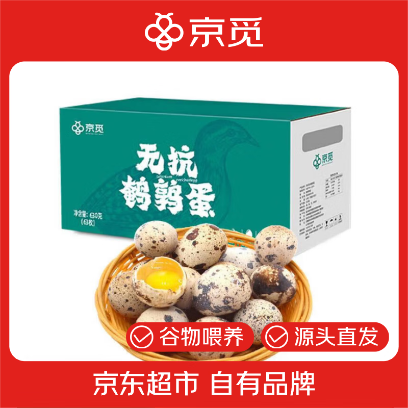 京觅 新鲜无抗鹌鹑蛋63枚/盒