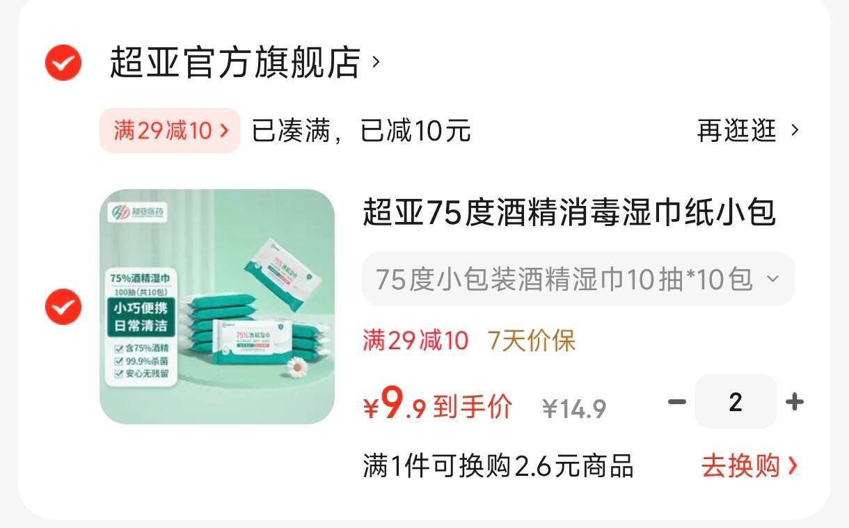 超亚75度酒精消毒湿巾 10抽*10包,拍2件19元.8 好单发报员 2025年12月03日 13:39 0 举报 超亚75度酒精消毒湿巾10抽*10包,拍2件19元.8https://u.jd.com/WGmQu1c 复制文案
