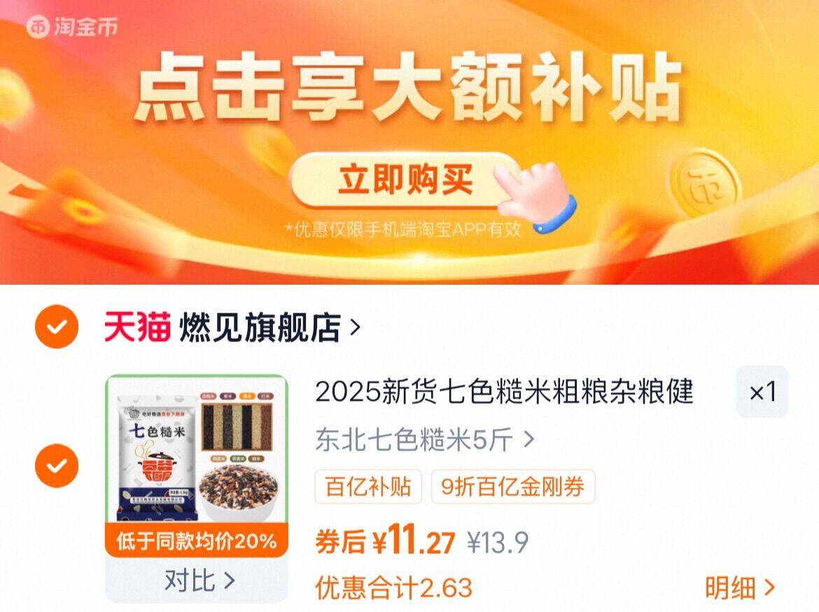 下拉详情拍 11亓,折2.2亓/斤 燃见 东北七色糙米5斤好单发报员2025年12月03日 15:510举报 下拉详情拍11亓,折2.2亓/斤燃见 东北七色糙米5斤https://m.tb.cn/h.7at4v8K复制文案