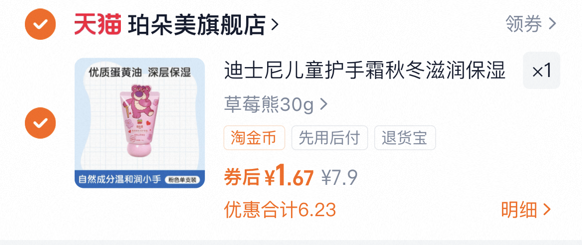 1.6亓 珀朵美儿童护手霜宝宝30g/支