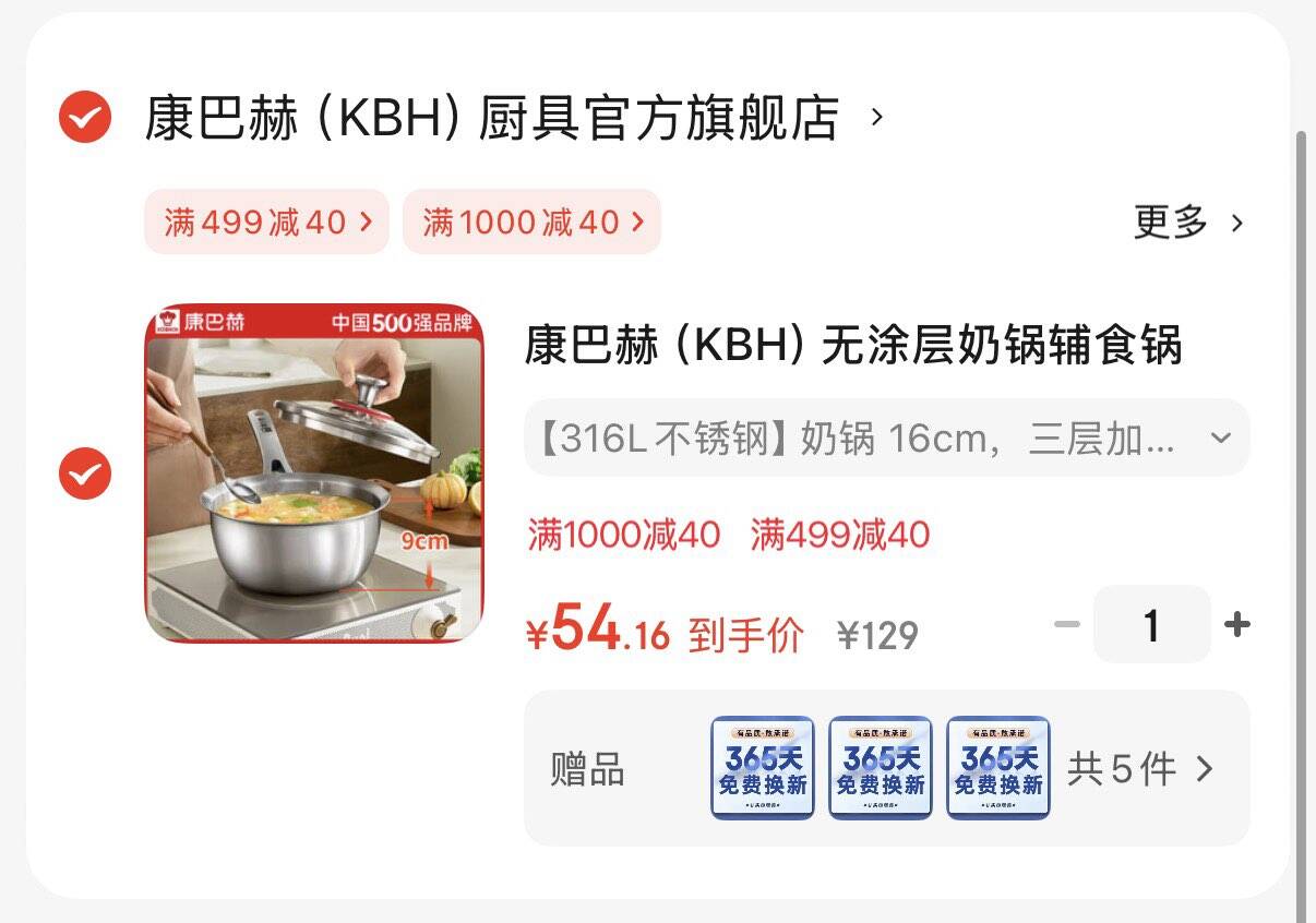 康巴赫无涂层奶锅 54.2亓