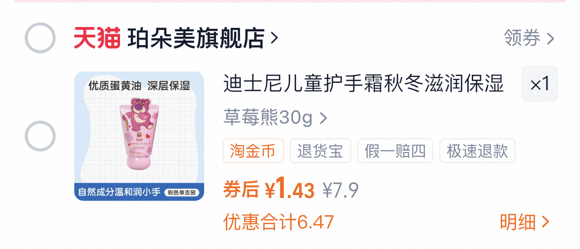 去淘金币拍 1.4 珀朵美儿童护手霜30g/支 好单发报员 2025年12月04日 00:03 0 举报 去淘金币拍 1.4珀朵美儿童护手霜30g/支https://m.tb.cn/h.7aehwZU 复制文案