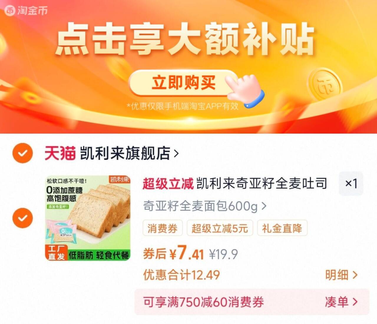 下拉详情拍,7.4亓 凯利来奇亚籽全麦吐司面包600g 好单发报员 2025年12月04日 09:37 0 举报 下拉详情拍,7.4亓凯利来奇亚籽全麦吐司面包600ghttps://m.tb.cn/h.SAI5MlC 复制文案
