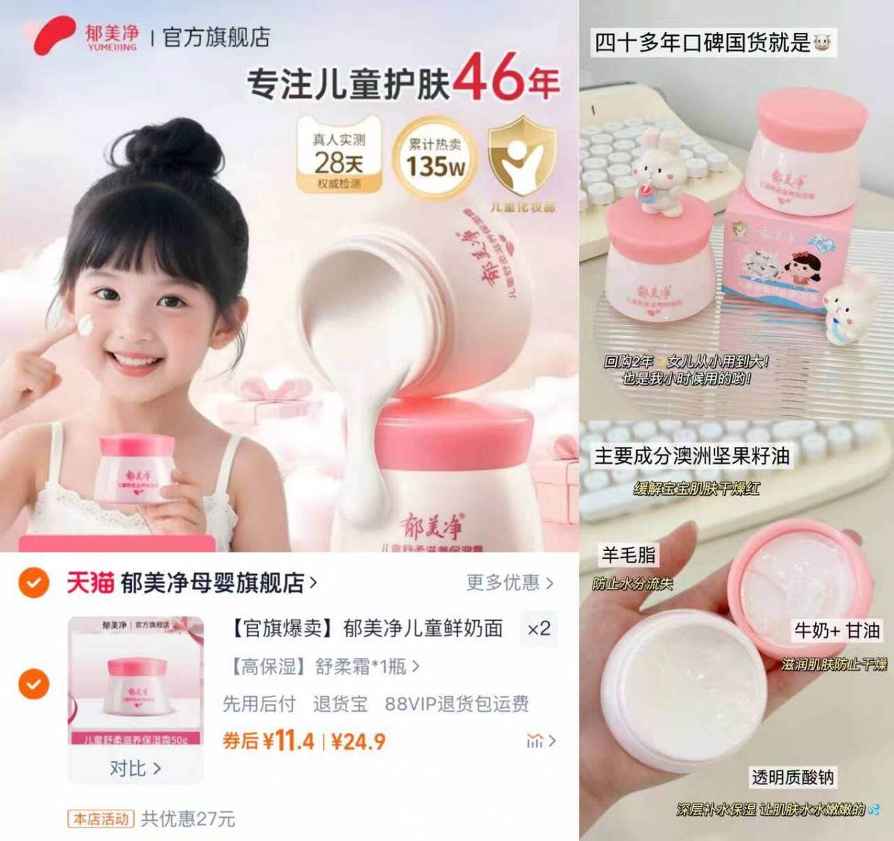 11.4/瓶郁美净保湿面霜 50g 1瓶,拍②22元.8 富含鲜牛奶,保湿倍滋润 好单发报员 2025年12月04日 10:54 0 举报 11.4/瓶郁美净保湿面霜50g 1瓶,拍②22元.8https://m.tb.cn/h.7ae7x9q富含鲜牛奶,保湿倍滋润无敏好吸收,锁水防起皮 复制文案