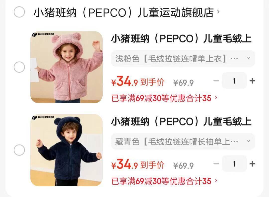 小猪班纳 儿童秋冬长毛绒连帽外套