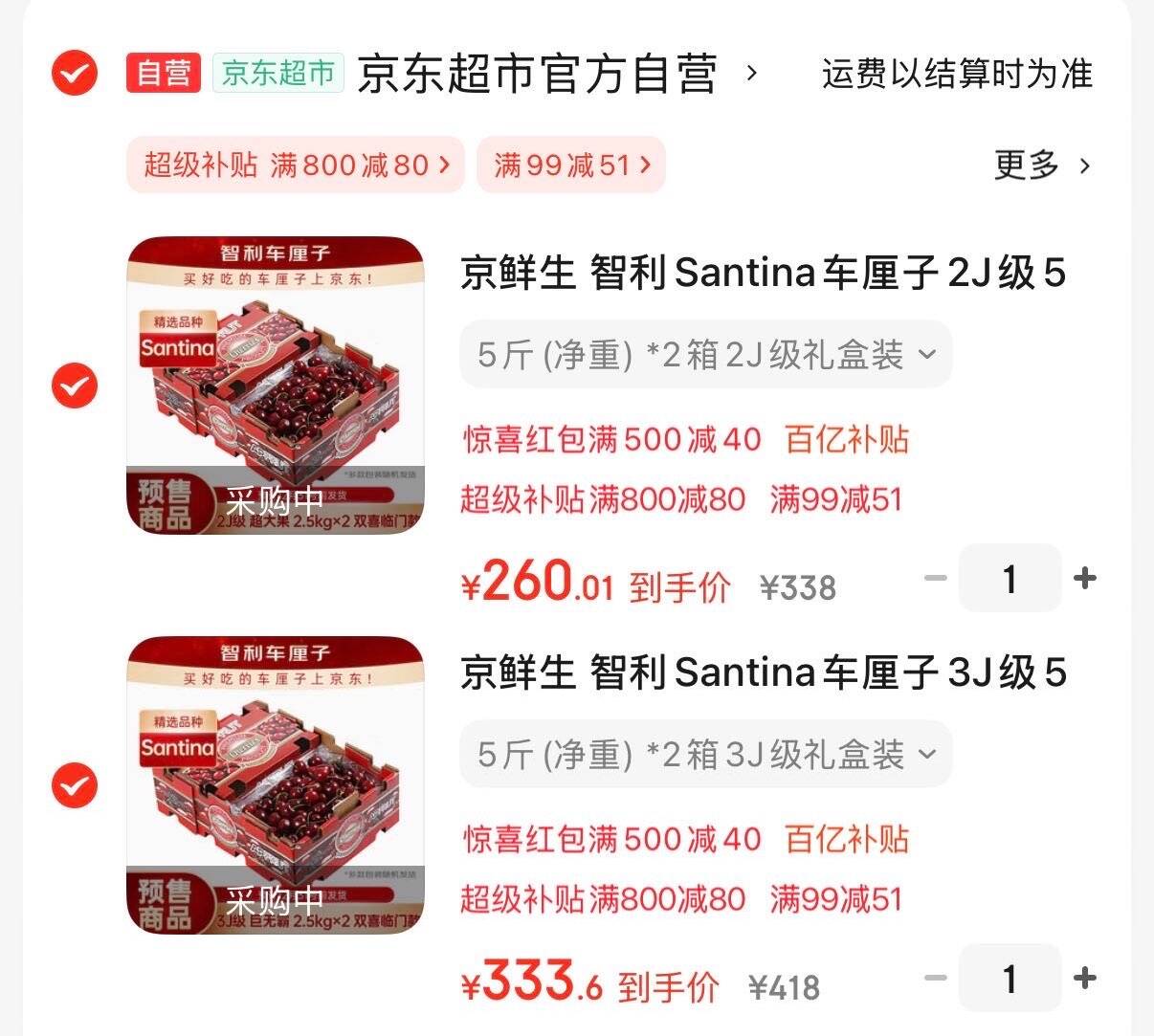 京鲜生智利进口Santina车厘子