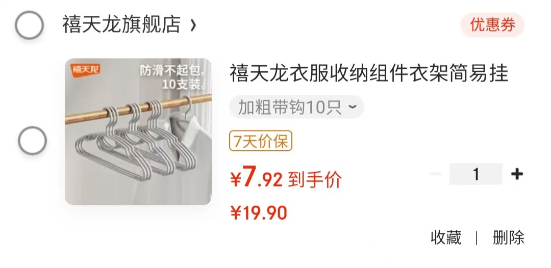 禧天龙 衣架加粗带钩10只【7.9】