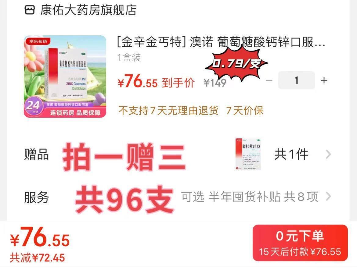 0元.79/支!拍1送3盒76.55元 澳诺史低 澳诺 葡萄糖酸钙锌口服溶液10ml*24支 共到手96支 OTC版吃更放心 好单发报员 2025年12月09日 18:27 0 举报 0元.79/支!拍1送3盒76.55元 澳诺史低澳诺 葡萄糖酸钙锌口服溶液10ml*24支https://u.jd.com/Z1gOvgk 共到手96支 OTC版吃更放心 复制文案