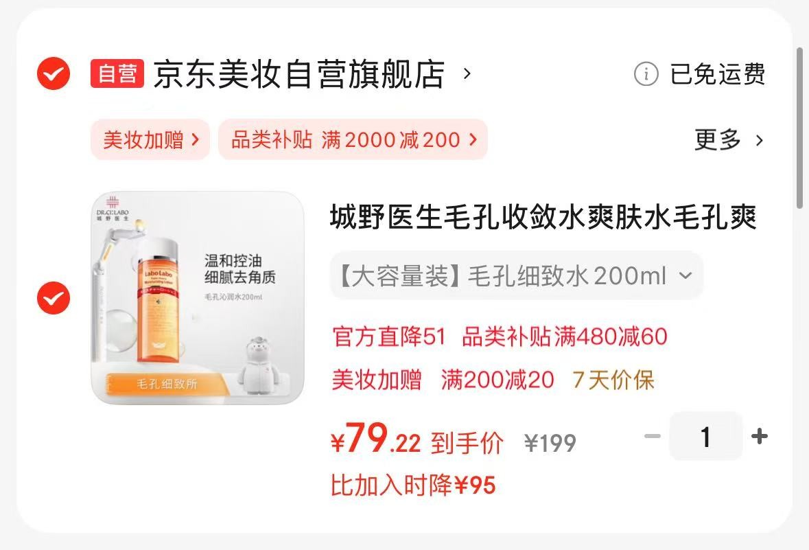 城野医生 毛孔收敛水爽肤水毛孔爽肤水湿敷水200ml,凑后【79】