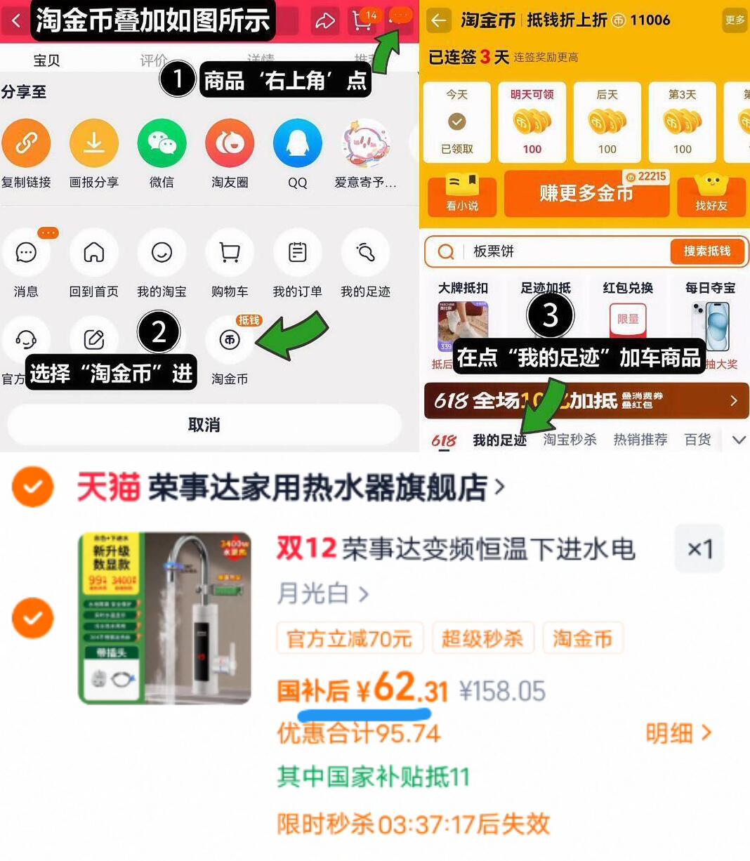 52亓神圿拍第1选项 拍下62亓!shai图饭10 叠标题处国补 4.8淘金币 好单发报员 2025年12月09日 20:39 0 举报 52亓神圿拍第1选项拍下62亓!shai图饭10 叠标题处国补 4.8淘金币【荣事达】家用电热水龙头~如图右上角叠“淘金币”拍~https://m.tb.cn/h.7YdMf4w 复制文案