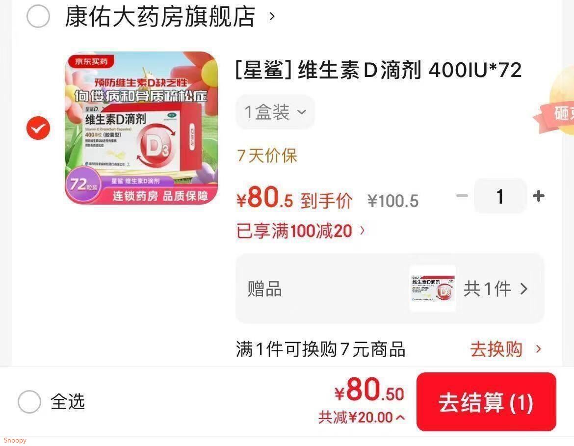 80.5元144粒 星鲨好价 星鲨 维生素D3滴剂72粒 买一赠一,共到手2盒好单发报员2025年12月09日 21:270举报 80.5元144粒 星鲨好价星鲨 维生素D3滴剂72粒 https://u.jd.com/ZGrzJ4m 买一赠一,共到手2盒OTC版本放心买,孩子每天都要吃!复制文案
