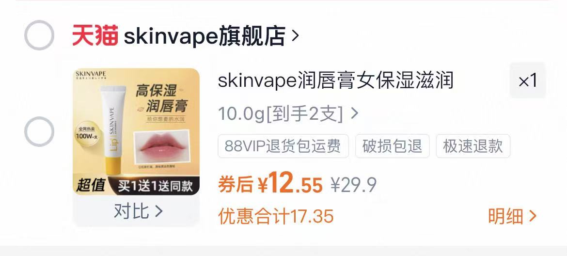 冲 6/支 未来润唇膏买一赠一 12.9元 得2支 日常一支要39 好单发报员 2025年12月10日 12:10 0 举报 冲 6/支 未来润唇膏买一赠一12.9元 得2支 日常一支要39https://m.tb.cn/h.7YomYCU 复制文案