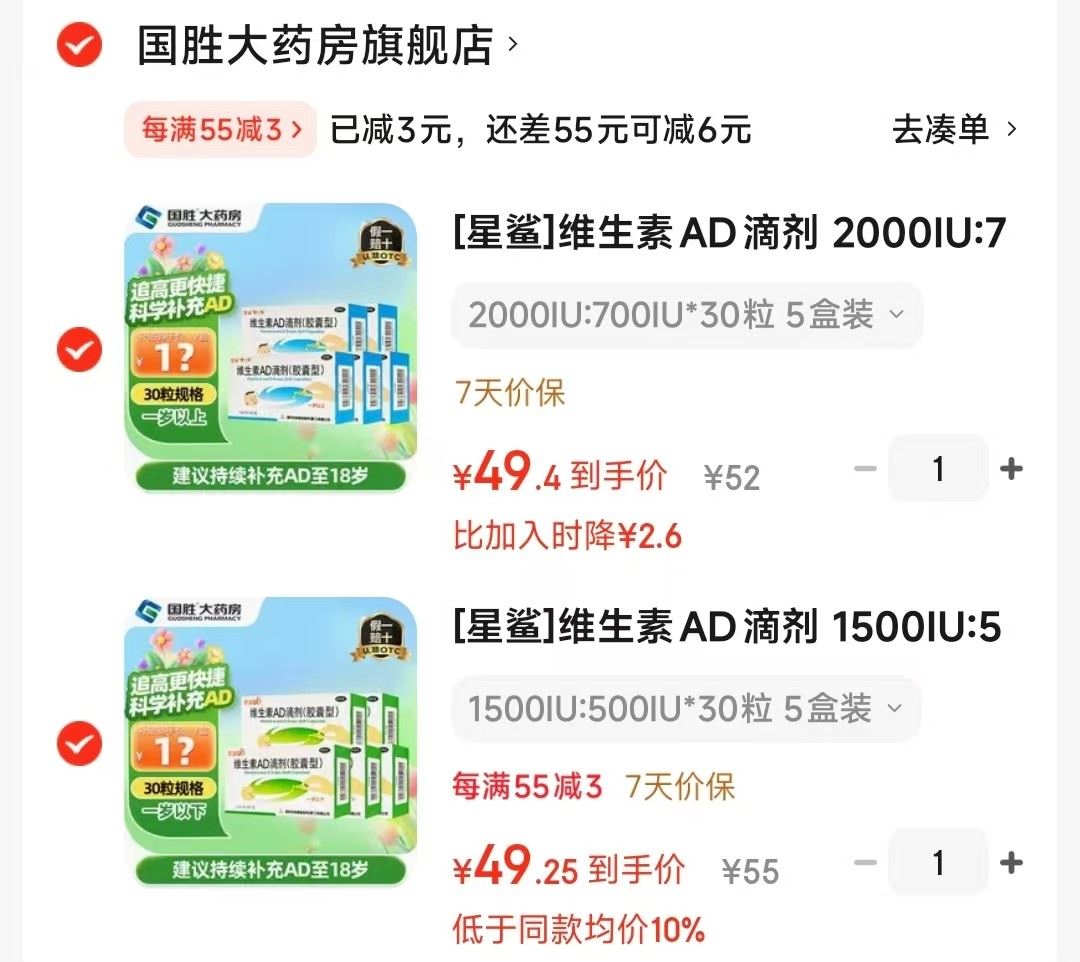 星鲨 维生素AD滴剂 1500IU:500IU*30粒 5盒装【49】