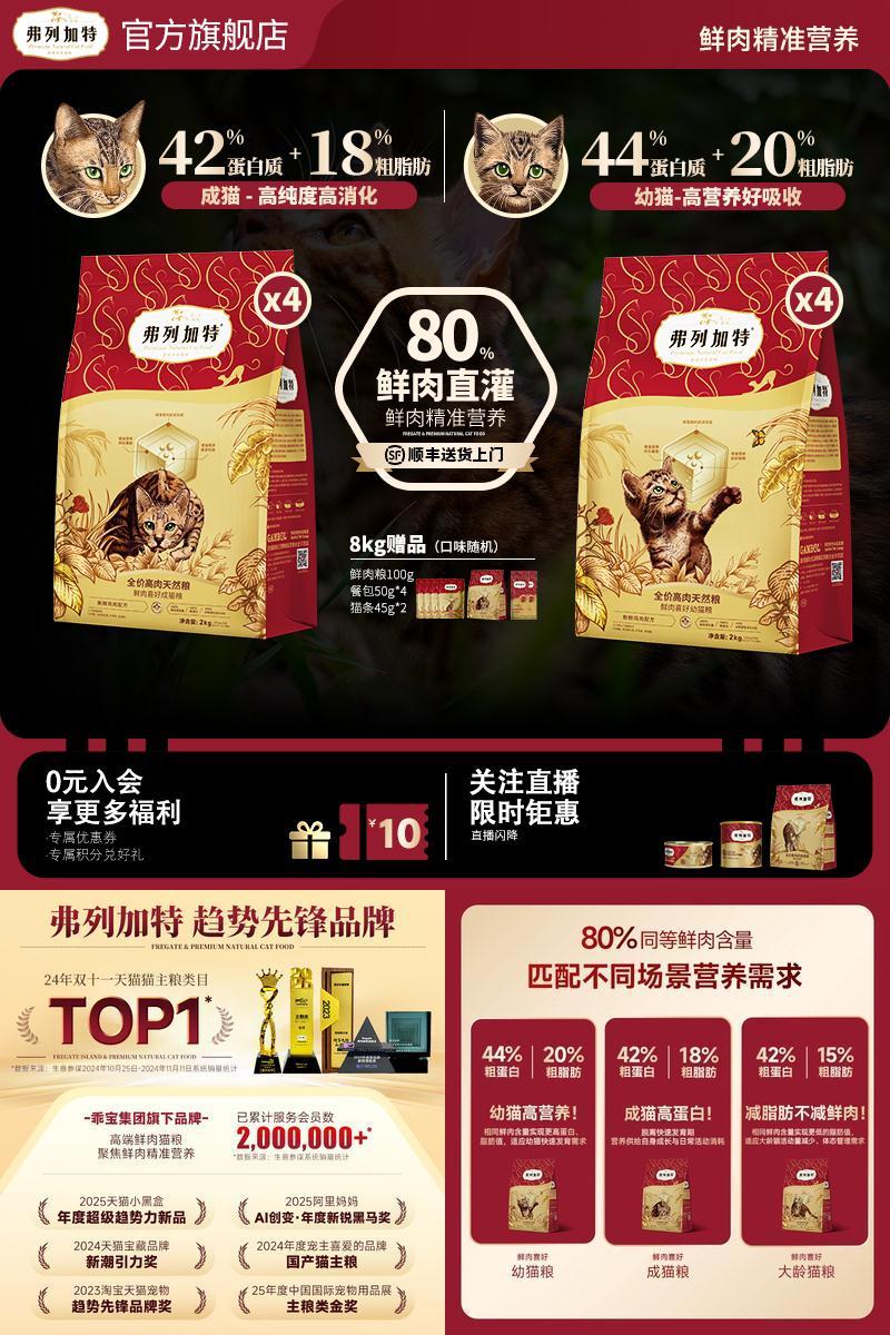 534元 fregate弗列加特旗舰店 幼成老专用|弗列加特80%鲜肉膨化猫粮猫咪囤货装高营养高蛋白官方 好单发报员 2025年12月10日 20:57 0 举报 534元 fregate弗列加特旗舰店幼成老专用|弗列加特80%鲜肉膨化猫粮猫咪囤货装高营养高蛋白官方https://m.tb.cn/h.7YlWU5g 复制文案