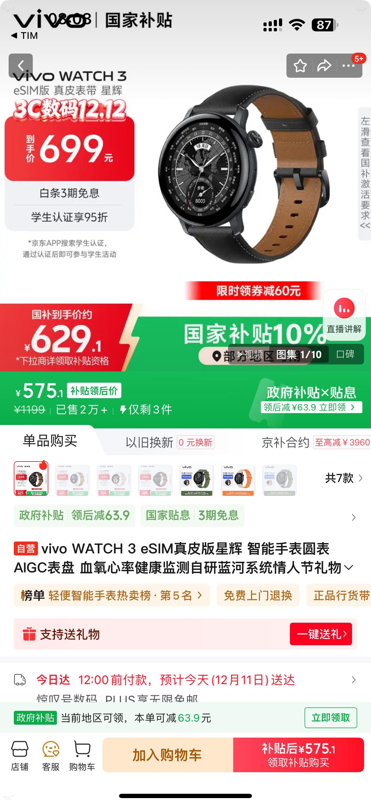 vivo WATCH 3 eSIM真皮版 575好单发报员2025年12月11日 09:270举报 vivo WATCH 3 eSIM真皮版【575】https://u.jd.com/Z1nQ42b复制文案