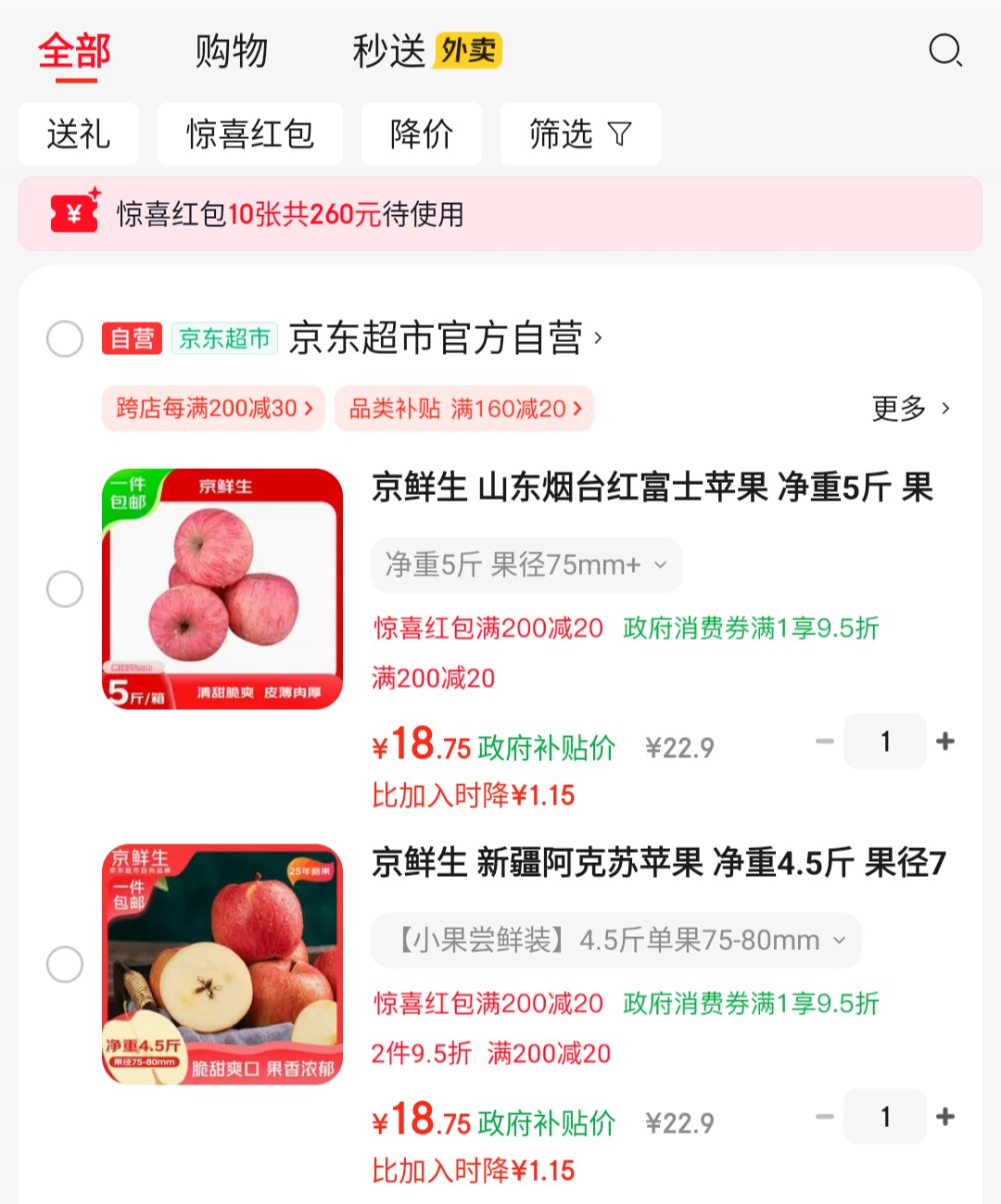 京鲜生 新疆阿克苏苹果 净重4.5斤 果径75-80mm【18.7】