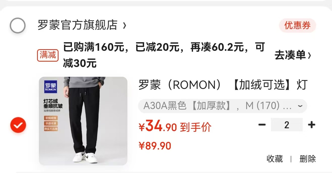 罗蒙 (ROMON)加绒可选 灯芯绒加厚休闲裤,任选2件【69.8】