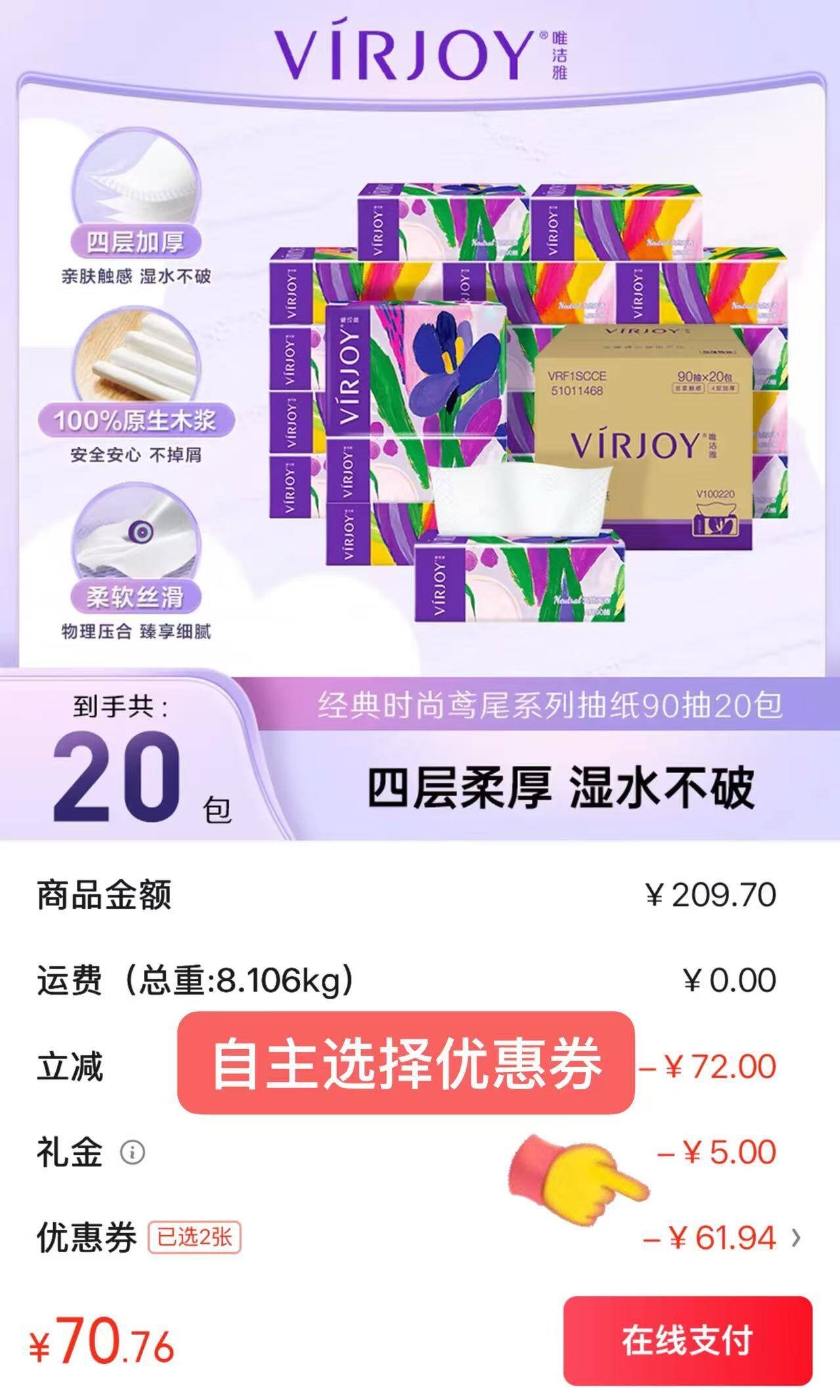 【自营】鸢尾抽纸4层90抽*20包