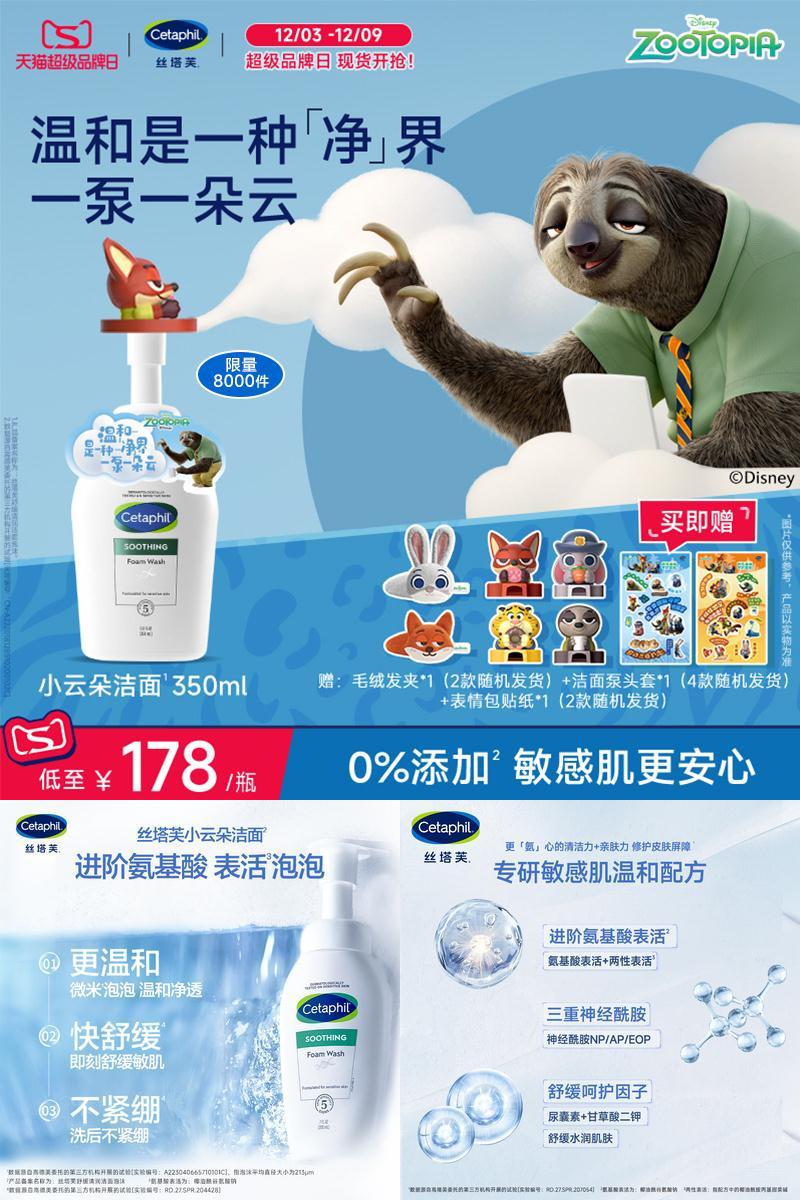 拍2件 241元 cetaphil丝塔芙旗舰店 全肤质可用 丝塔芙小云朵洁面