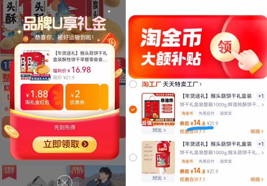 14.8亓神圿足足2斤 下拉详情拍,叠礼金 2金币 猴头菇饼干礼盒合集任选 好单发报员 2025年12月12日 20:14 0 举报 14.8亓神圿足足2斤下拉详情拍,叠礼金 2金币猴头菇饼干礼盒合集任选https://m.tb.cn/h.7cb8mBw 复制文案