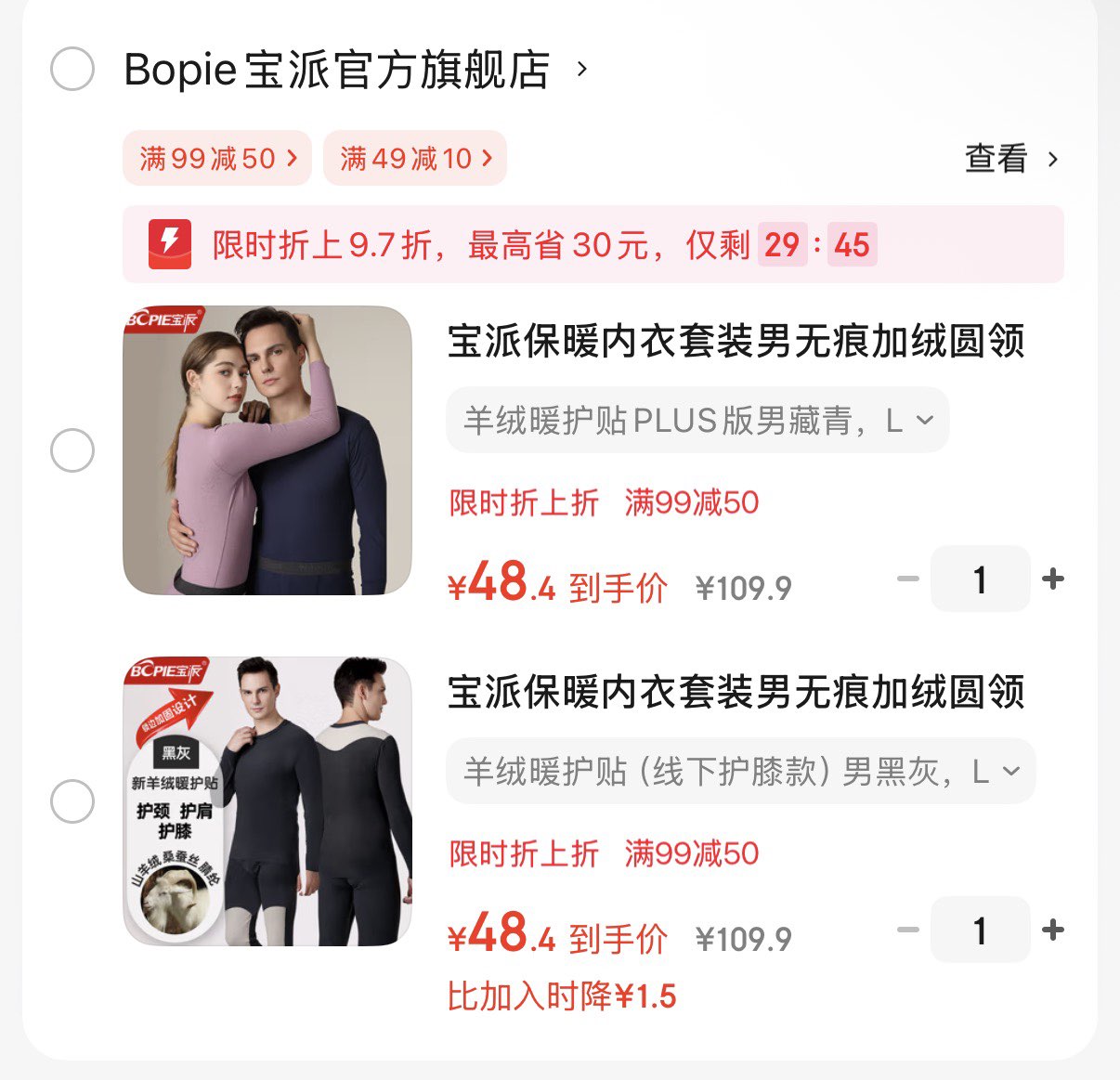 弹9.7折立减,拍下48.4亓