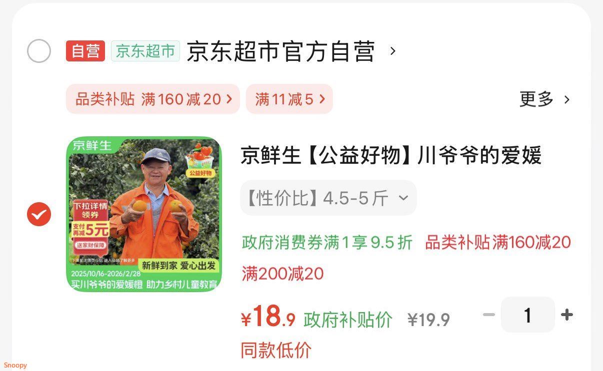 19.9亓 爱媛果冻橙4.5-5斤 如有消费券更低 好单发报员 2025年12月13日 17:05 0 举报 19.9亓 爱媛果冻橙4.5-5斤https://u.jd.com/ZOZCMhK 如有消费券更低 复制文案