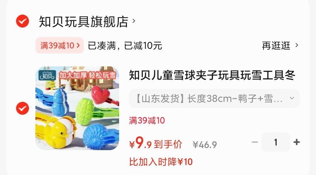 9.9元 打雪仗必备!好价快冲~ 知贝 儿童雪球夹子玩具38cm*3个 共有3个形状 满足孩子整个雪季! 好单发报员 2025年12月13日 17:35 0 举报 9.9元 打雪仗必备!好价快冲~知贝 儿童雪球夹子玩具38cm*3个https://u.jd.com/ZOZaeWo 共有3个形状 满足孩子整个雪季! 复制文案