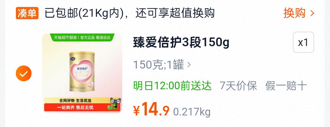 西安等部分地区有货 飞鹤臻爱倍护3段150g 14.9好单发报员2025年12月13日 19:550举报 西安等部分地区有货飞鹤臻爱倍护3段150g14.9https://m.tb.cn/h.72SRc3k复制文案