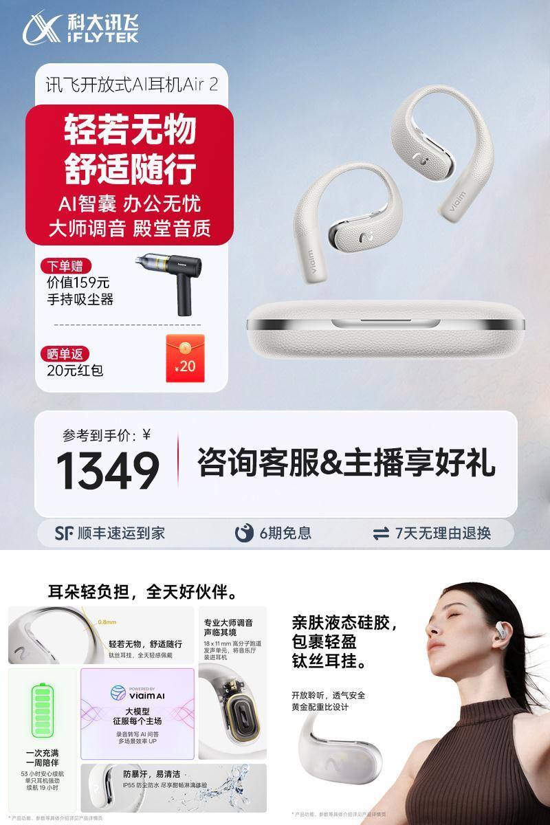 1599元 科大讯飞旗舰店 讯飞开放式运动蓝牙无线耳机 好单发报员 2025年12月13日 20:10 0 举报 1599元 科大讯飞旗舰店讯飞开放式运动蓝牙无线耳机https://m.tb.cn/h.7ctesNc 复制文案