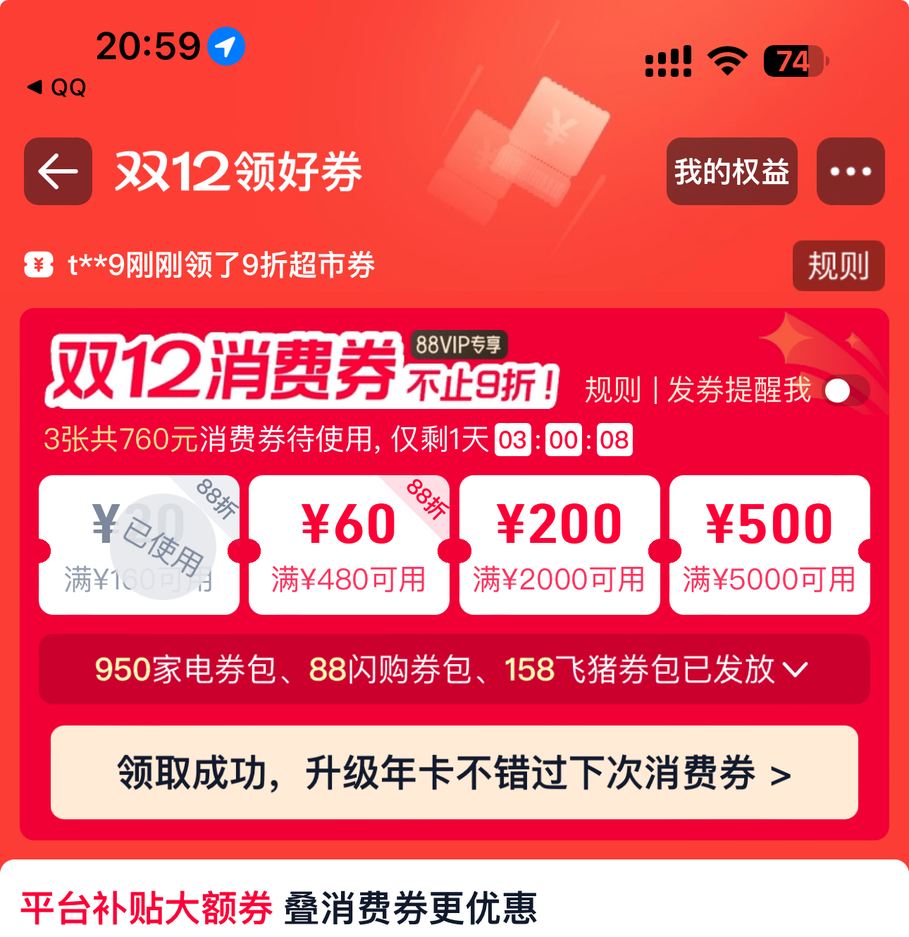 显卡车--都需要领88vip的消费券 ,不满券可用,就凑単用券 ,