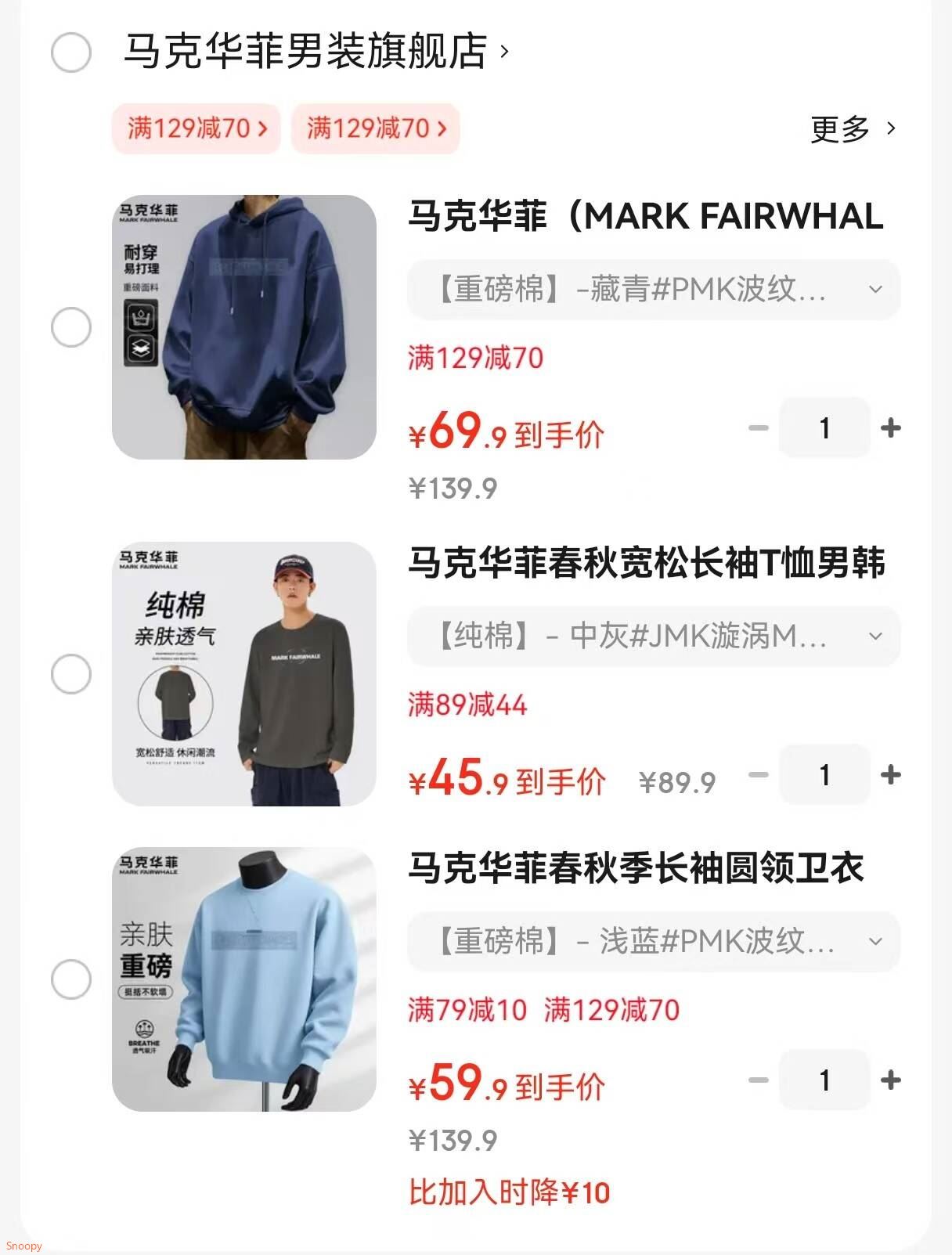 马克华菲 春秋宽松长袖纯棉【45.9】
