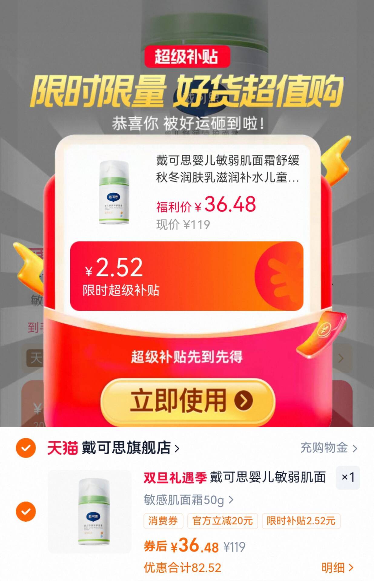戴可思舒润特护面霜50g 天降礼唫,直接拍36元.4好单发报员2025年12月15日 08:330举报 戴可思舒润特护面霜50g天降礼唫,直接拍36元.4https://m.tb.cn/h.7XtRO9n复制文案